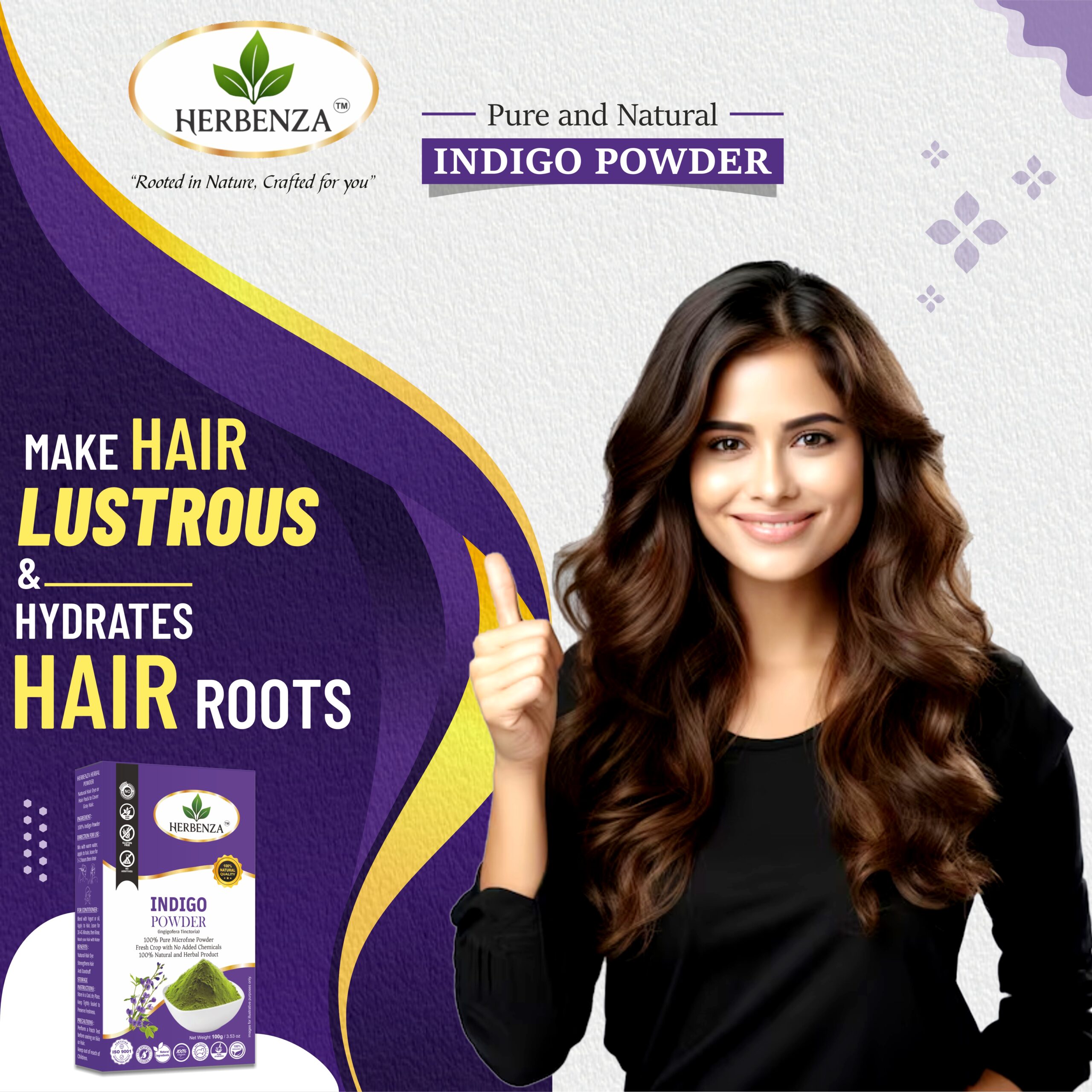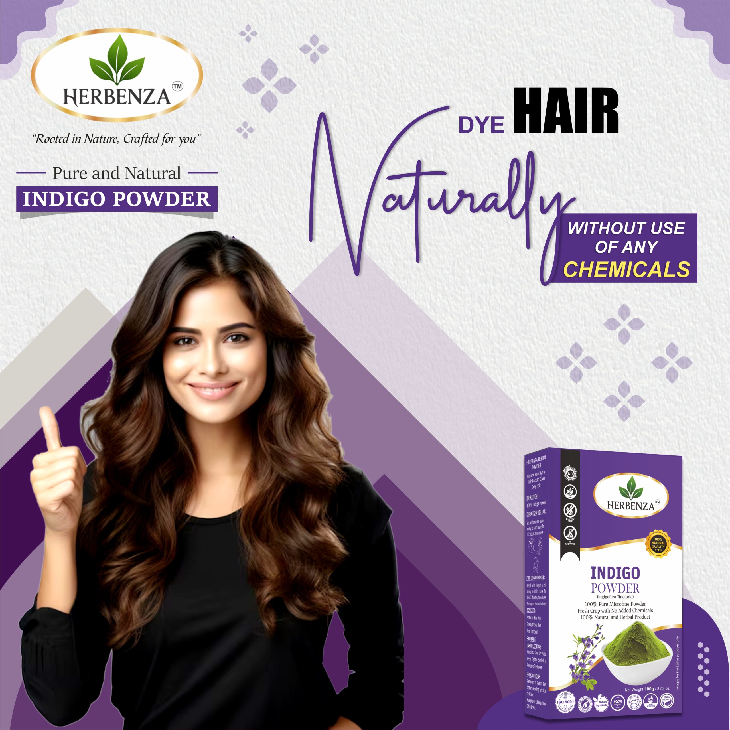 Experience the power of nature with Herbenza Herbal Indigo Powder. Made from pure indigo leaves, this herbal hair color is free from harmful chemicals, ensuring gentle care for your hair and scalp. Regular use helps: